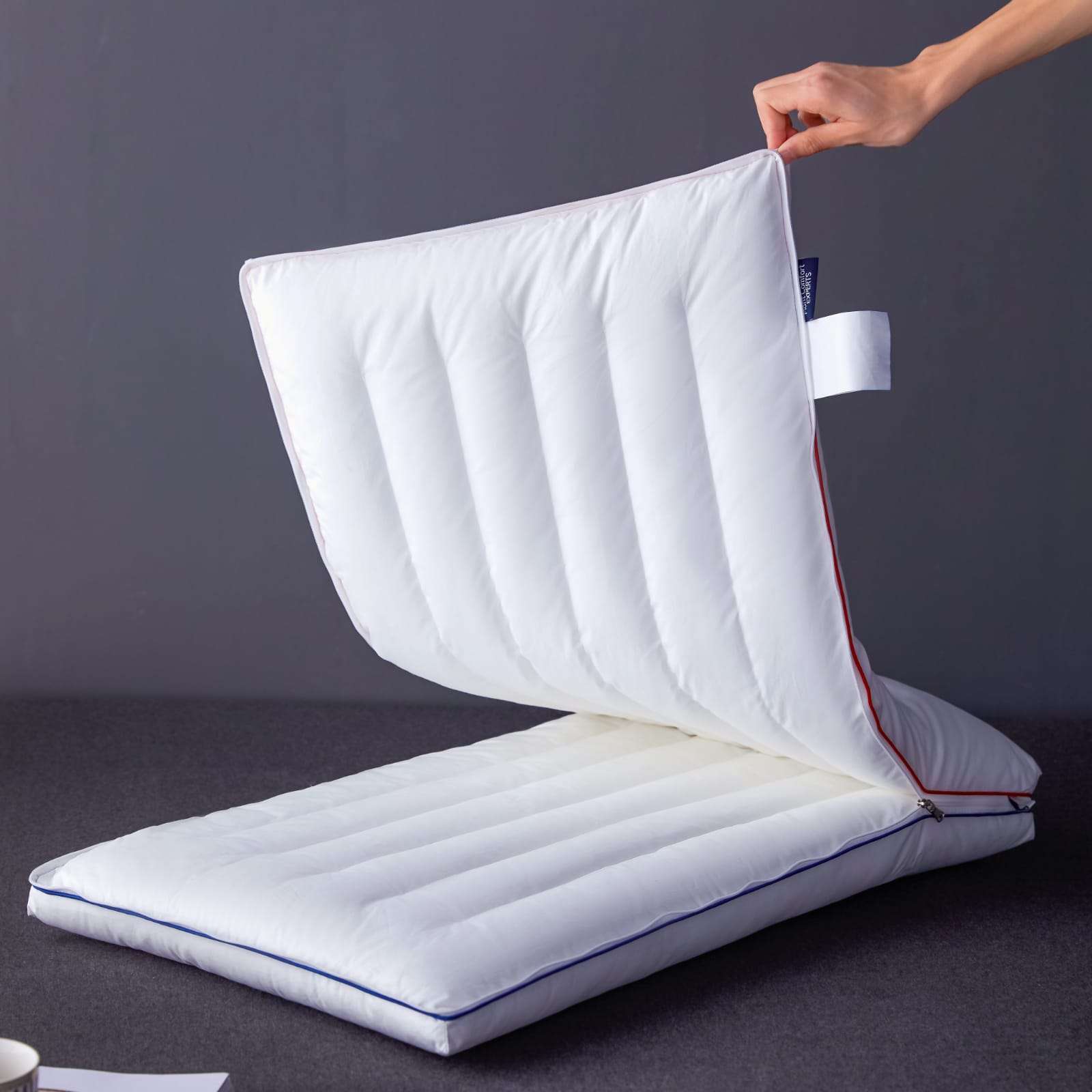 Two-layer pillow separated by a zipper, filled with Microfiber